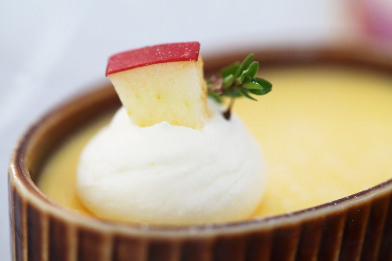 Egg pudding with an apple slice and some whipped cream to boot. My favorite of the four. Super smooth and creamy, with some nice caramel hiding underneath!